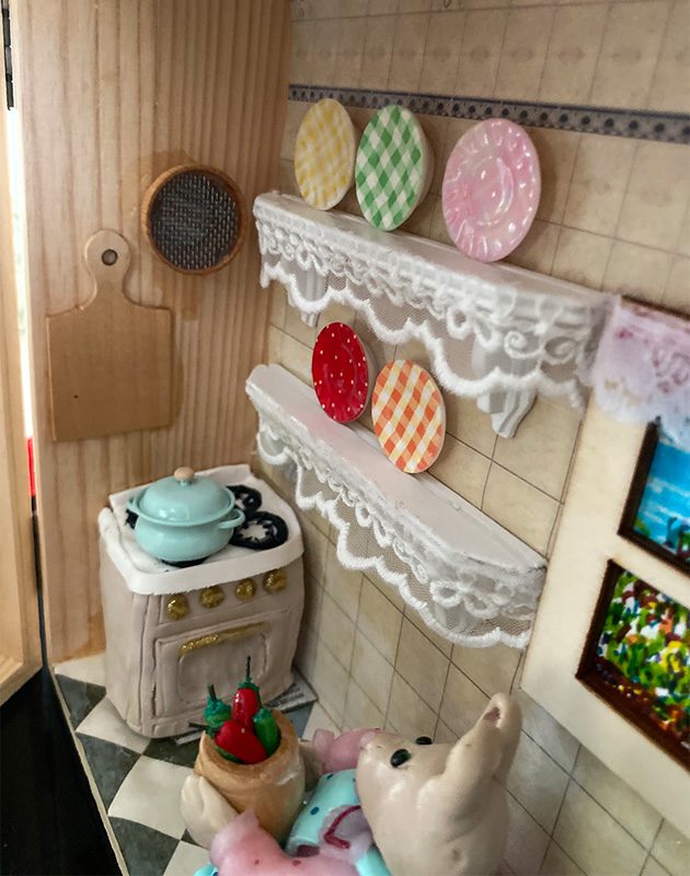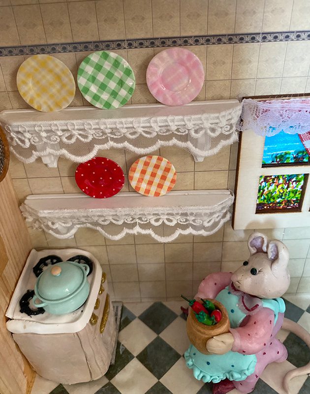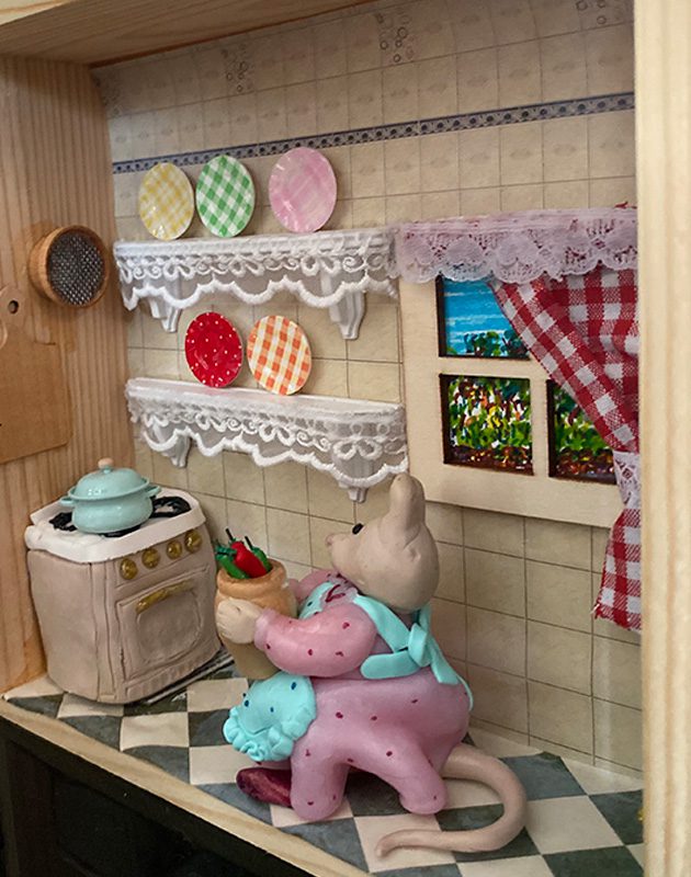Lady Mouse is cooking in her little kitchen. She loves mixing flavors and scents, experimenting with new recipes and taking care of her loved ones.