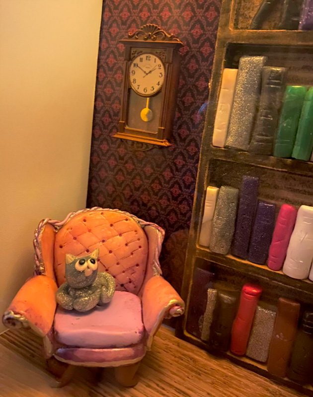 Every spring, she starts writing a story; every autumn, she tears it up, eating almond chocolate with potato chips. Together. She can say in less than a minute all the names of the authors that start with an “F”. She works in an old, historical library, frequented by poets, academics, elderly bon viveurs, and crime fiction writers. And one of their killers. Her bergères have faint stains from Lady Chat’s favorite brandy—yes, just Chat, because she talks a lot. Giko the cat is a permanent tenant, but Minie the spider is just passing by on her way to the storage room. The smell of the old books has a hint of vanilla-flavored coffee. When it rains, the old library becomes a visual poem.